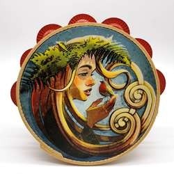 Pandereta de 21cm de diámetro y 6.5 cm de altura. Realizada en...